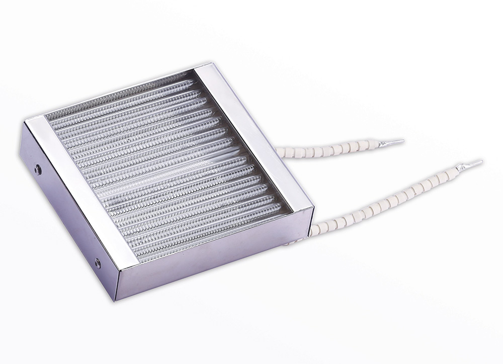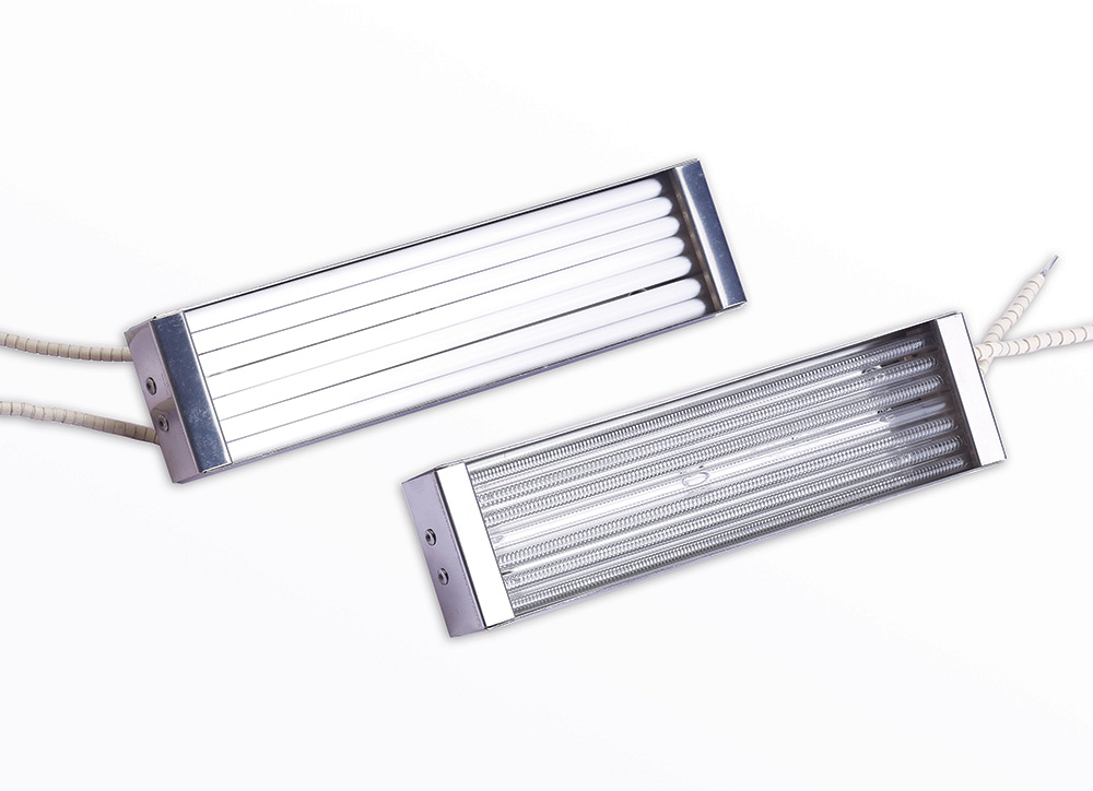 Quartz emitters provide medium wavelength radiation and can be the most preferred source of heat when rapid heater response is needed. The modules are comprised of a series of quartz tubes running parallel to each other within a highly reflective steel housing. Each tube contains a coiled resistance wire available in a variety of wattages and voltages. The large variety of sizes, shapes, and watt densities allows quartz emitters to be highly useful in zoning arrangements such as plastic thermoforming sheet-fed applications where complex heating patterns are needed, high-speed roll-fed processes, and machines requiring precise zone control because they are small in size, and can easily be put in larger panels.