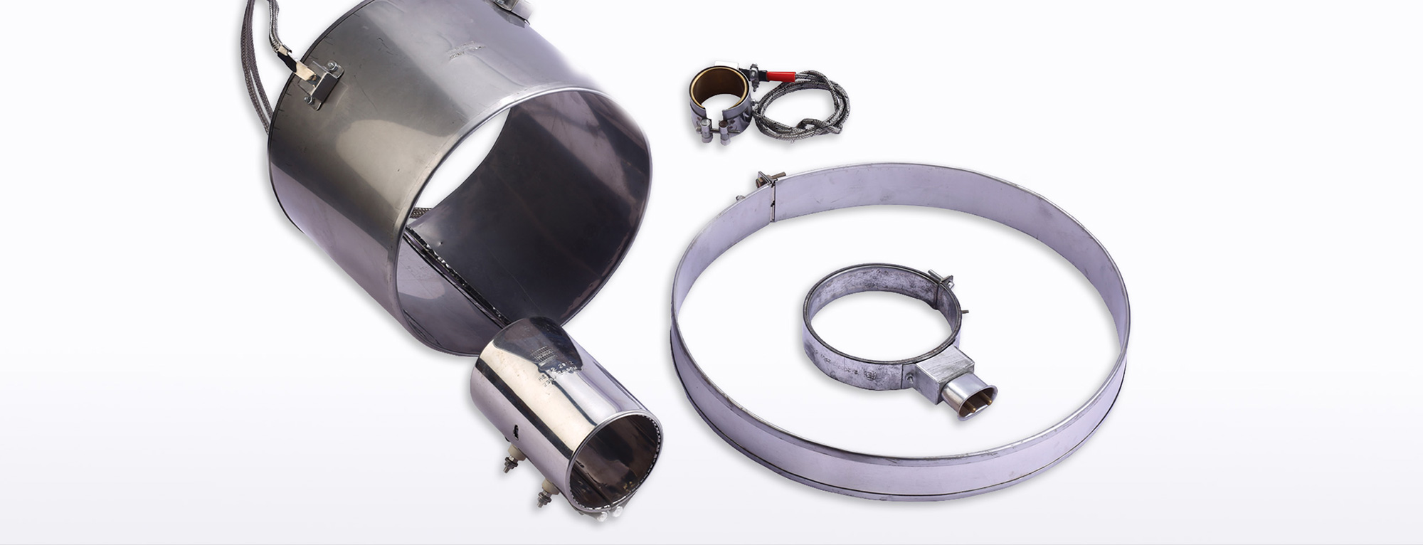 For contact accessories, cable fittings, clamping devices, fixed & braided connection, heat resistant, flexible insulation with metal braided cable housing of any convenient length, connection boxes & types according to the band heatersdimensions, power & type of power supply.