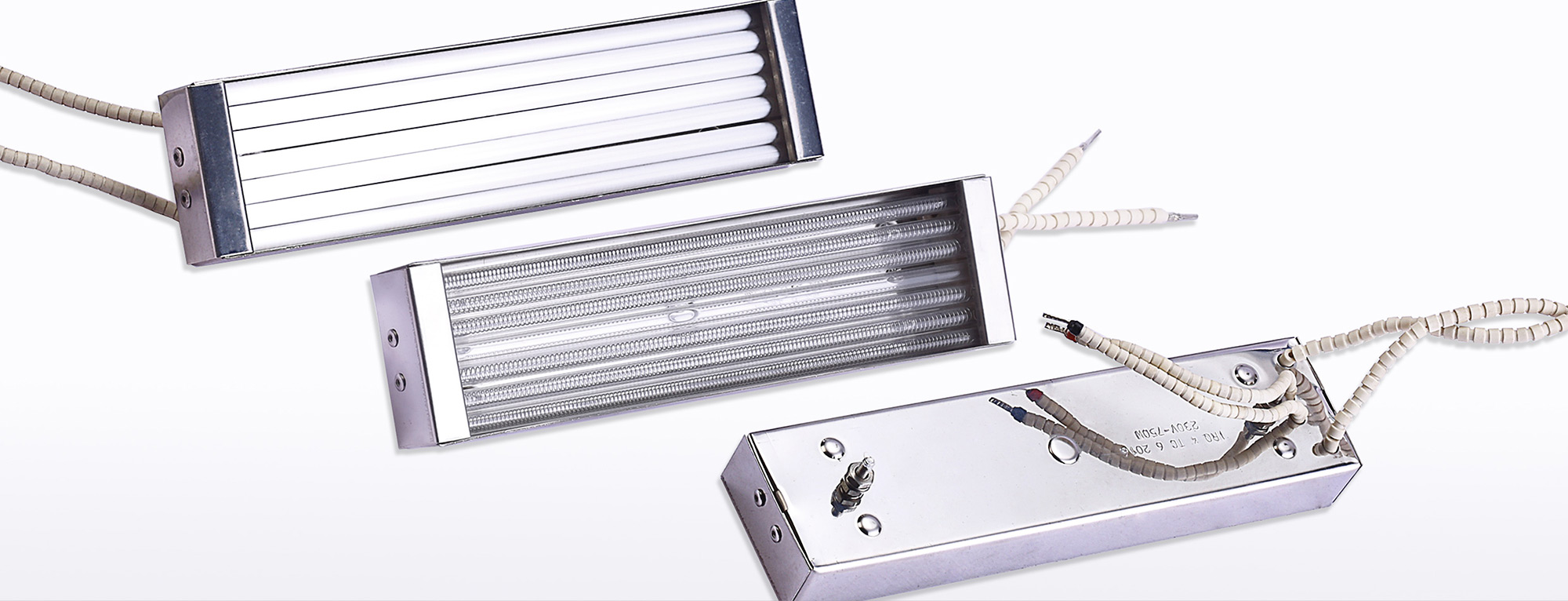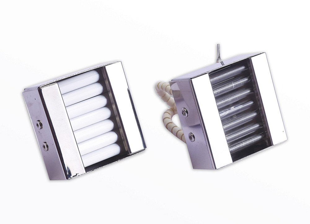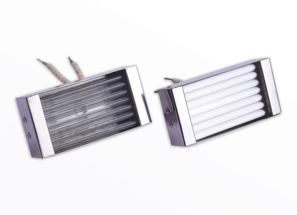 Quartz emitters provide medium wavelength radiation and can be the most preferred source of heat when rapid heater response is needed. The modules are comprised of a series of quartz tubes running parallel to each other within a highly reflective steel housing. Each tube contains a coiled resistance wire available in a variety of wattages and voltages. The large variety of sizes, shapes, and watt densities allows quartz emitters to be highly useful in zoning arrangements such as plastic thermoforming sheet-fed applications where complex heating patterns are needed, high-speed roll-fed processes, and machines requiring precise zone control because they are small in size, and can easily be put in larger panels.